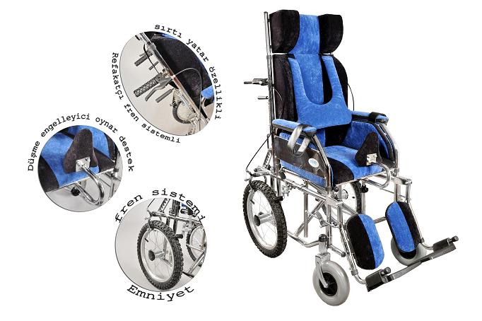 Tekerlekli sandalye freni. 22 kg bir sandalye sunmaktadır. Elektro statik toz boya kaplı çelik şasesi çok güçlü ve dayanıklıdır. Ayrıca emniyet kemeri de bulunmaktadır. Bu sayede güvenli bir sürüş sağlar.